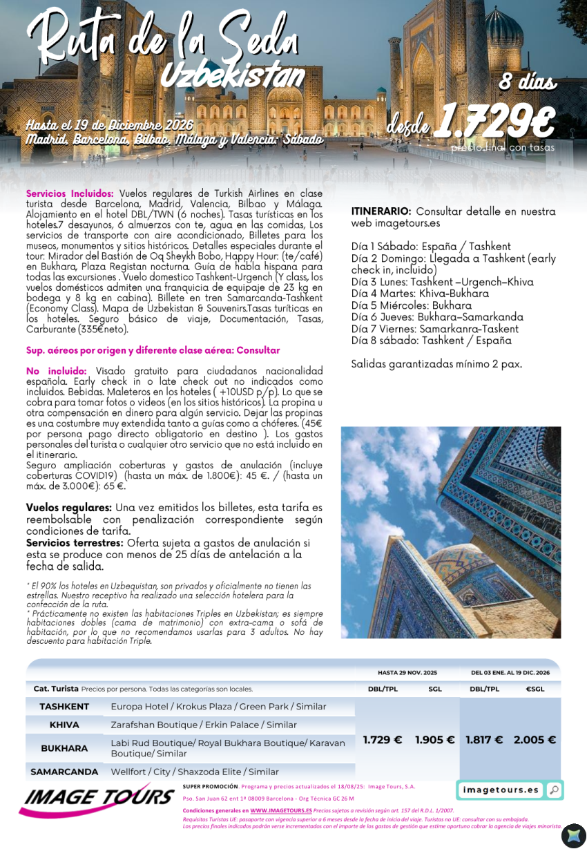 Ruta de la Seda en Uzbekistán, 8 días con precios hasta diciembre 2026 desde 1729€