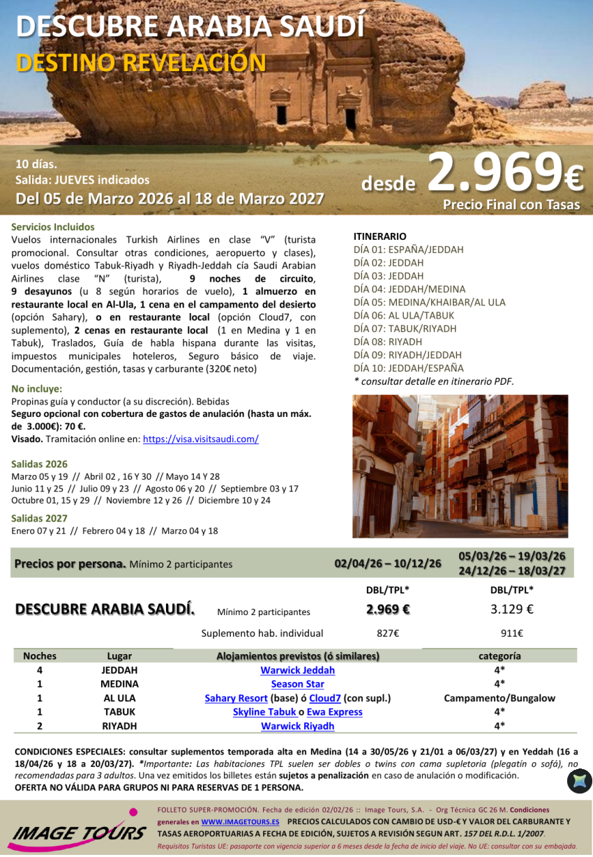 Descubre ARABIA SAUDI 2026-2027, circuito con todas las visitas y noche en desierto, 10 días desde 2.969€