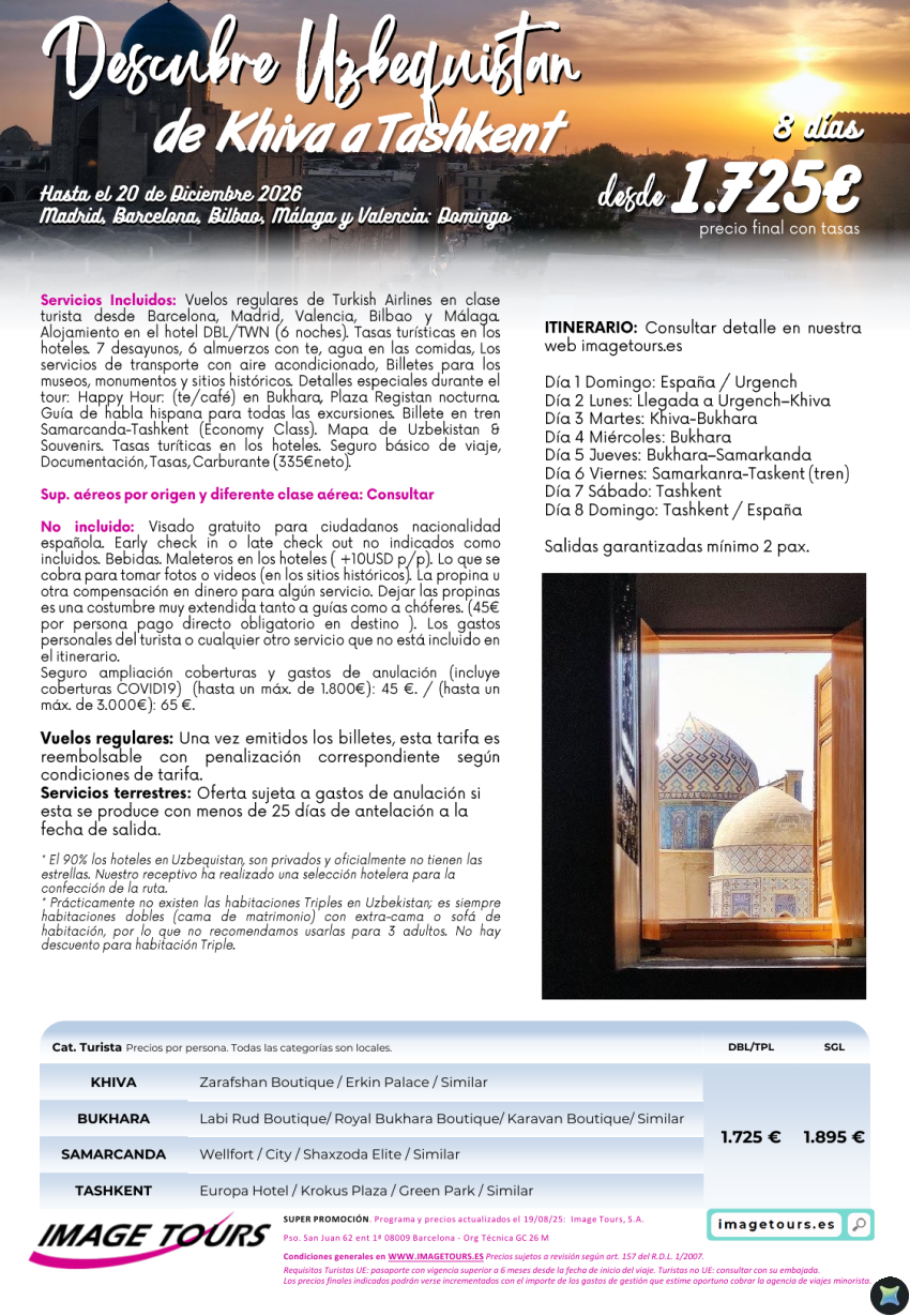 Descubre Uzbekistán, de Khiva a Tashkent, 8 días con precios hasta diciembre 2026 desde 1725€
